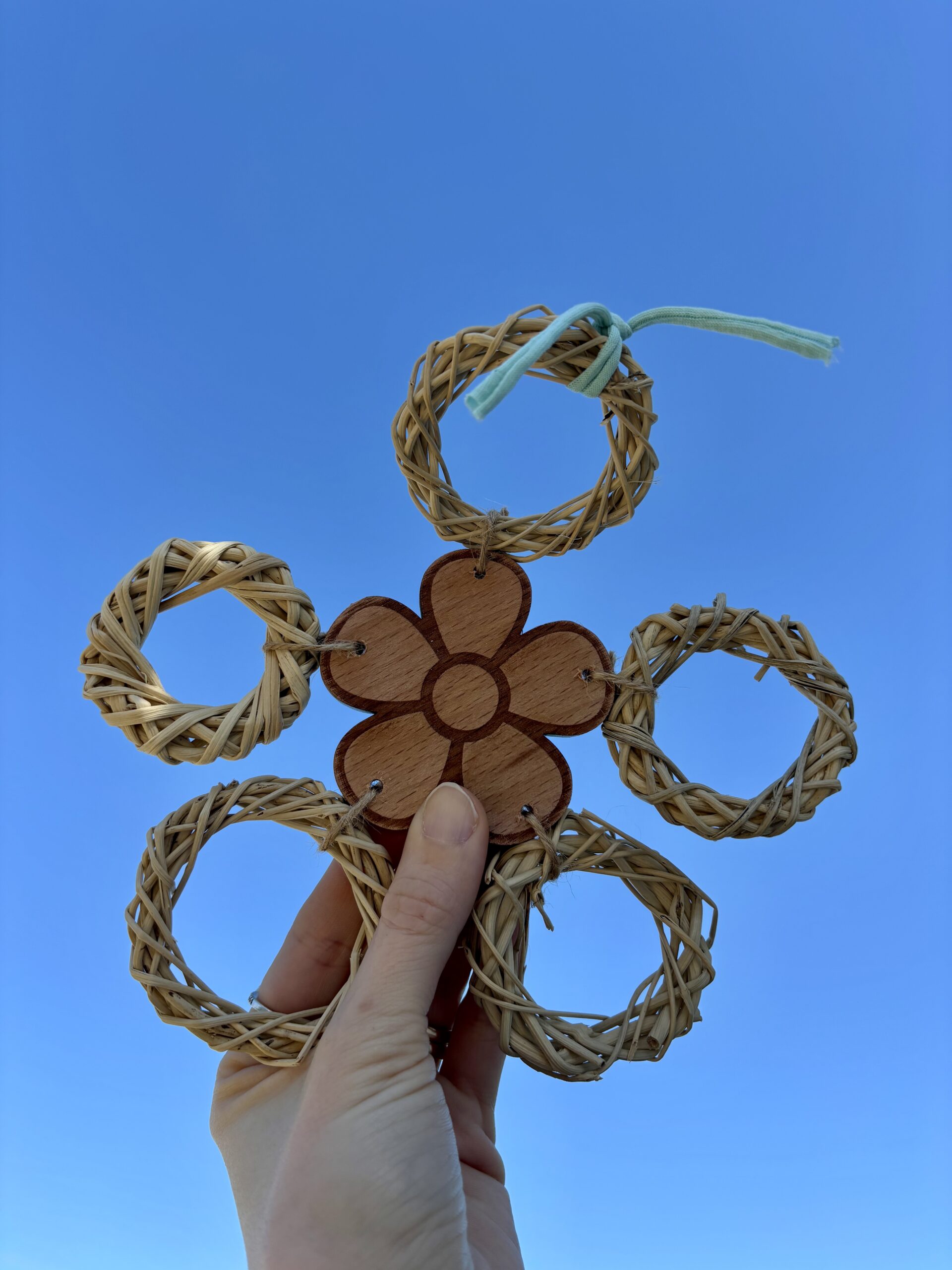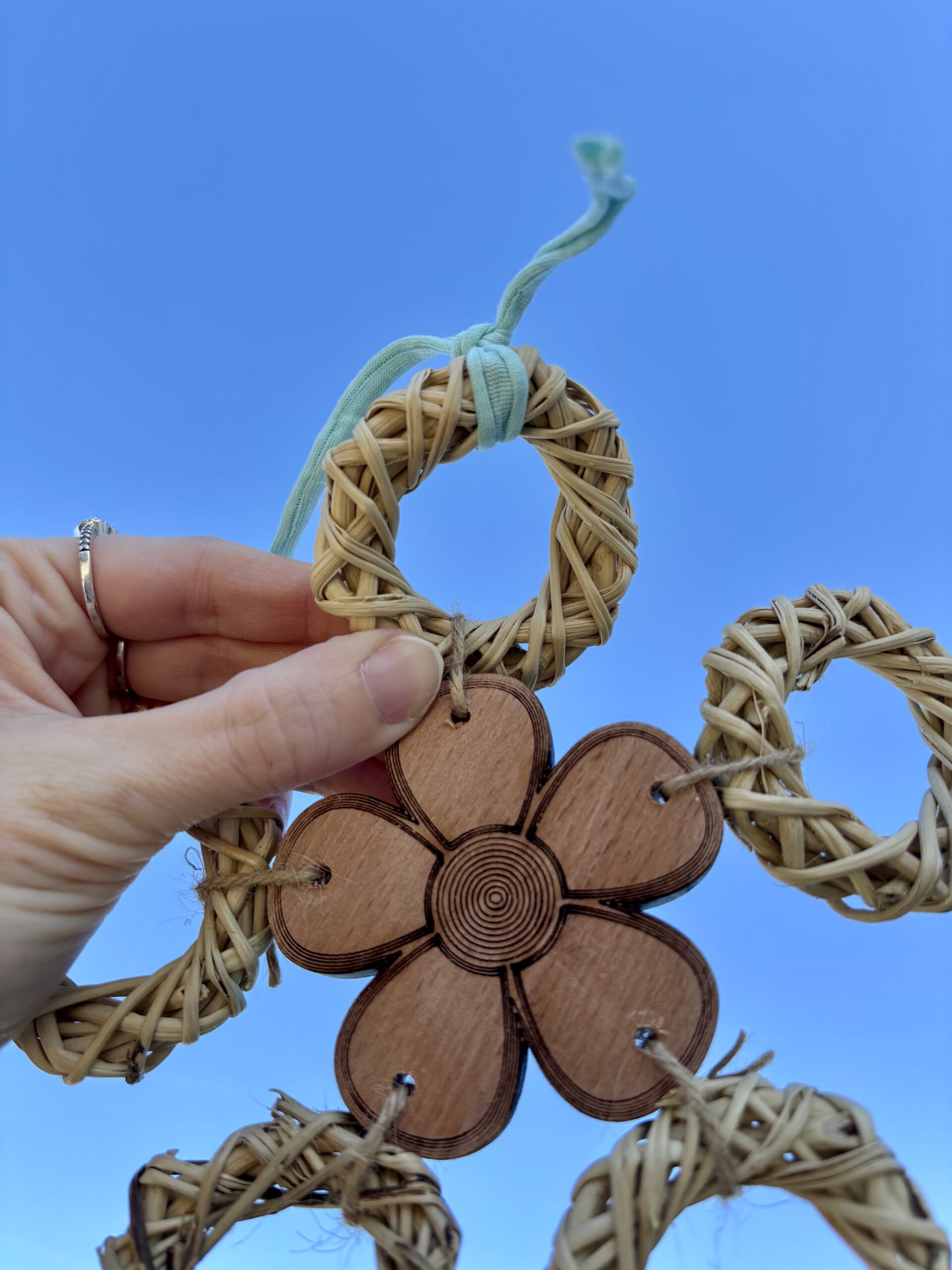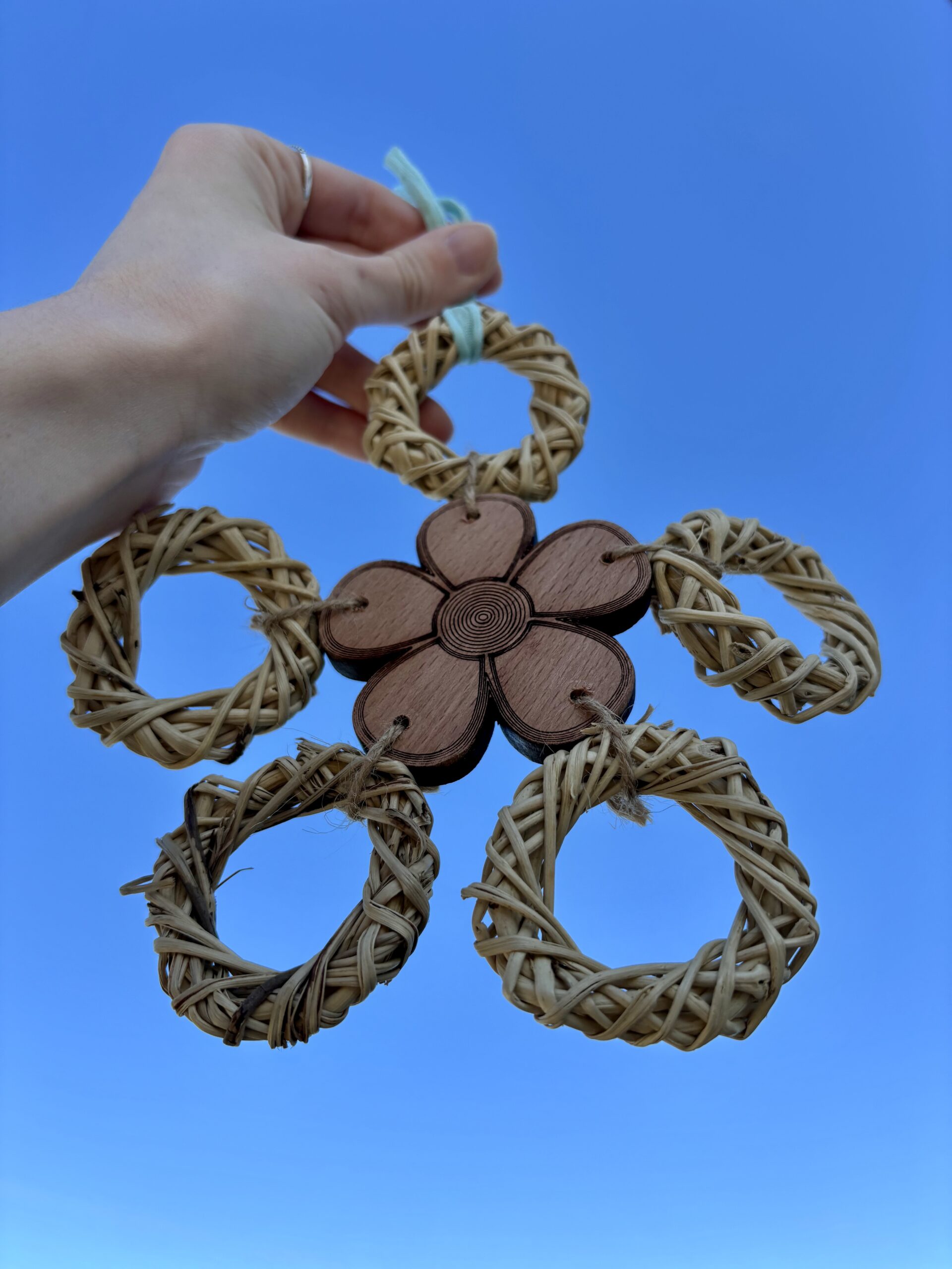 Il gioco è composto da anelli di rattan, decorazione in legno di faggio, corda di juta e corda di cotone resistente. Ogni pezzo è unico e pensato per stimolare il becco, le zampe e la curiosità del pappagallo, contribuendo all’arricchimento ambientale e al suo benessere quotidiano.