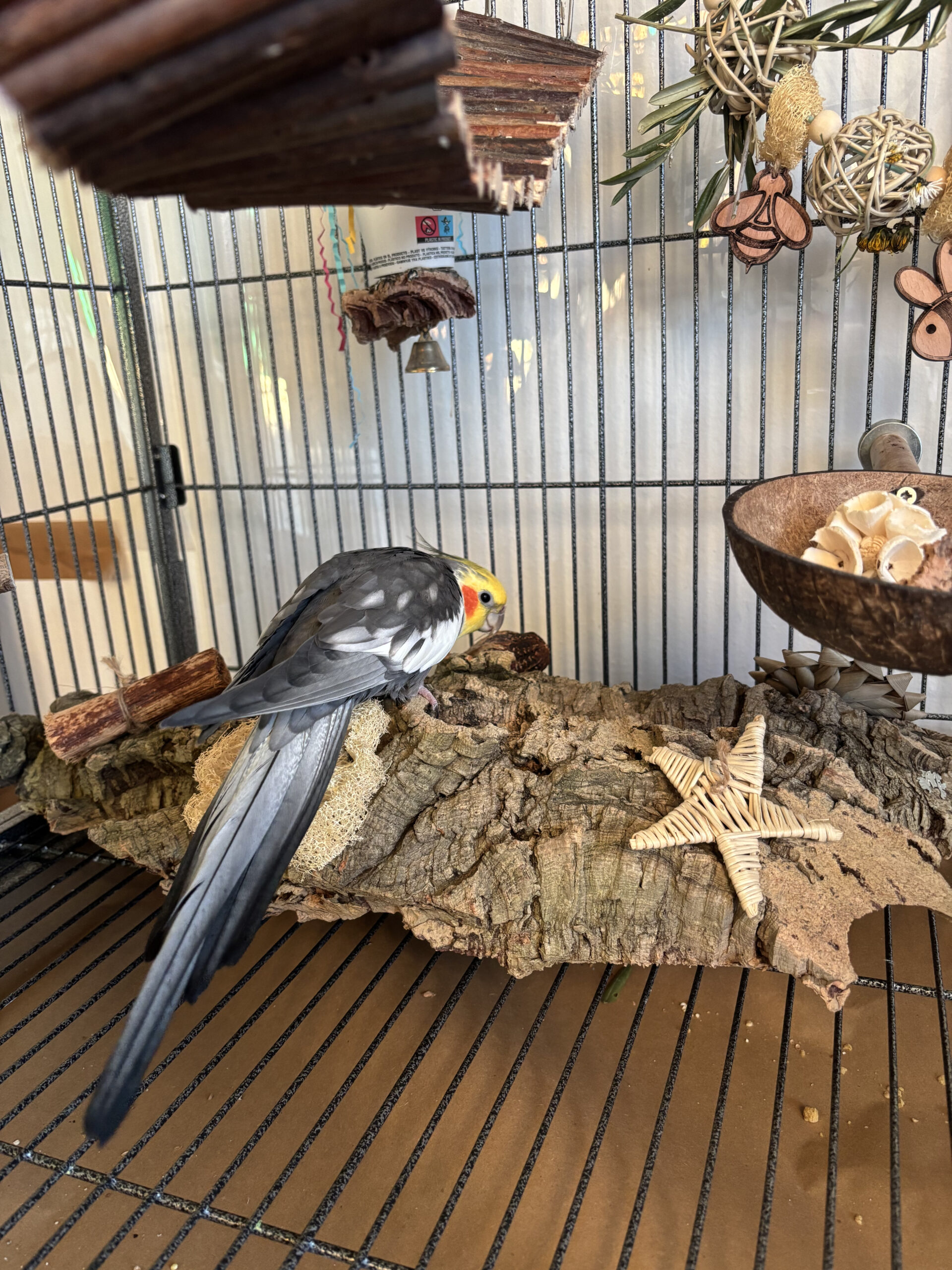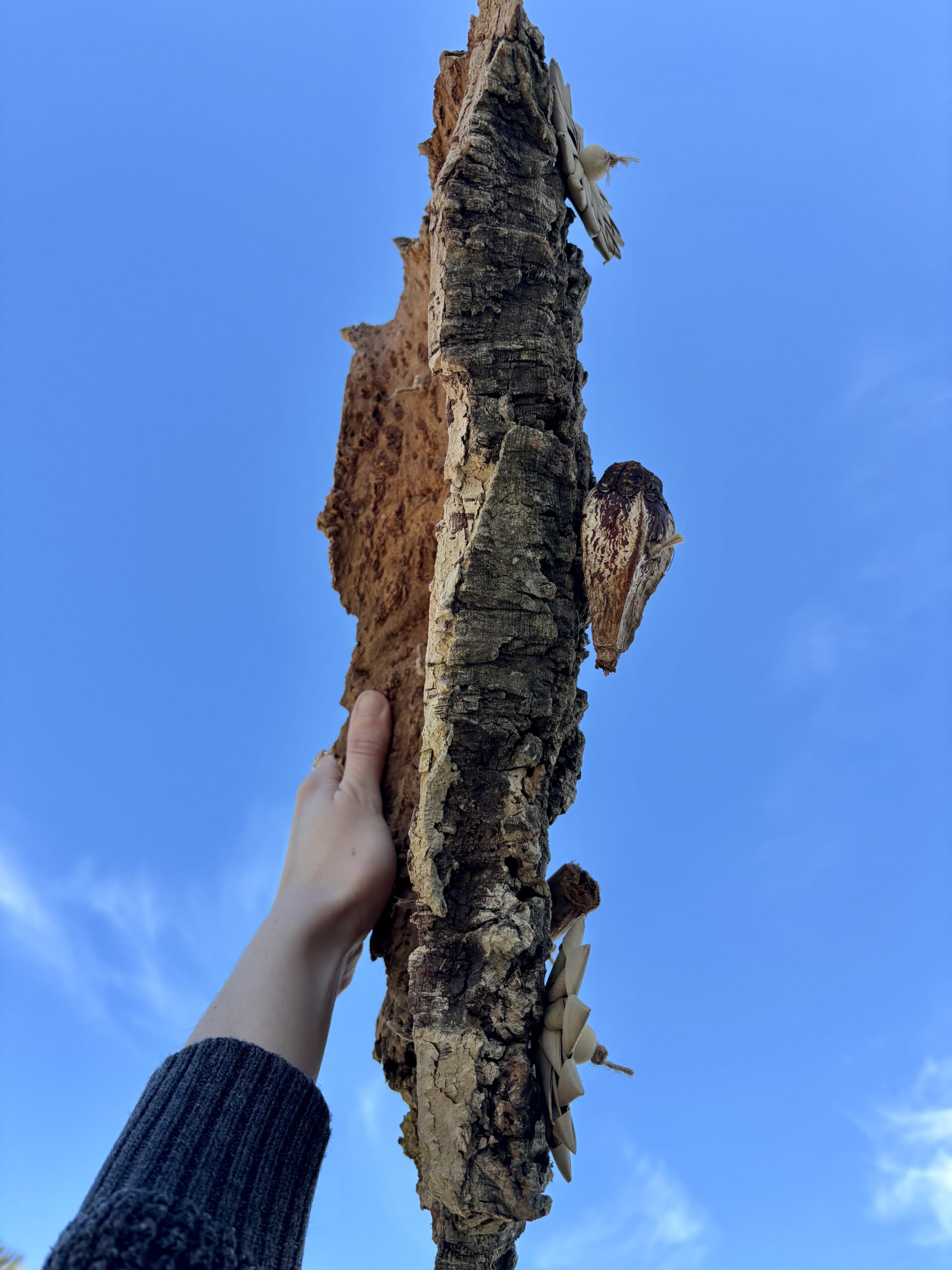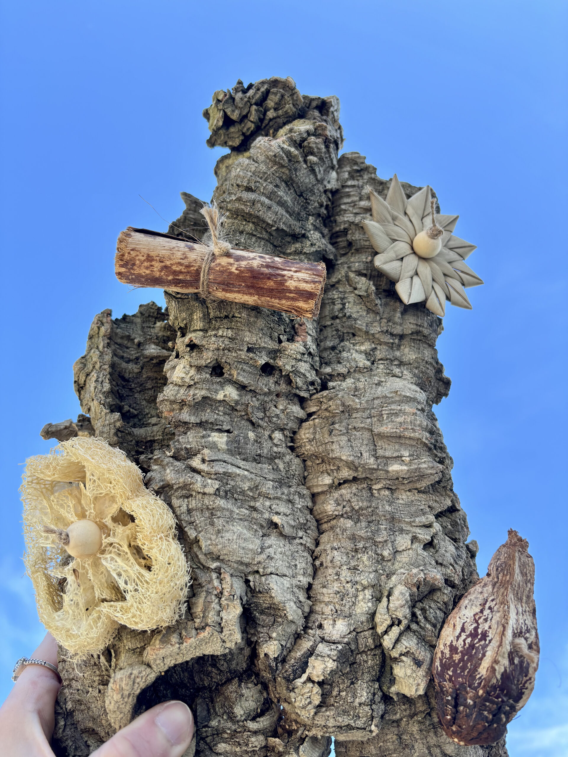 Piattaforma di sughero realizzato artigianalmente per pappagalli.